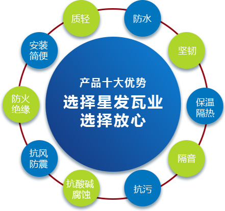公司主要產(chǎn)品有《星發(fā)牌》合成樹脂瓦、APVC防腐耐候復(fù)合瓦、APVC發(fā)泡隔熱瓦、PVC半透明瓦、PVC防腐隔熱瓦、PVC防腐瓦、PVC防腐平板、PVC條紋板和ASA/PVC超耐候復(fù)合瓦等產(chǎn)品。產(chǎn)品一經(jīng)推出,已被廣泛應(yīng)用于國內(nèi)各類平改坡項(xiàng)目和大型工業(yè)項(xiàng)目,遠(yuǎn)銷歐洲、亞洲、美洲和非洲等國外市場,還獲選為廣州亞運(yùn)會(huì)、深圳大運(yùn)會(huì)、四川災(zāi)后重建等工程項(xiàng)目的應(yīng)用產(chǎn)品。公司在不斷創(chuàng)新和改革的基礎(chǔ)上,力求以更好的產(chǎn)品、優(yōu)良的服務(wù),用心、專心服務(wù)好每一個(gè)客戶。